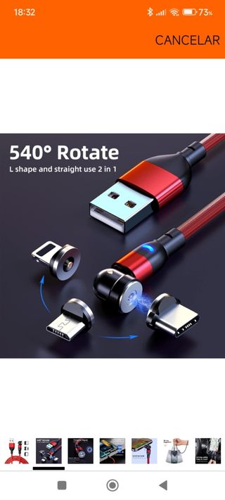 Cable de carga magnético 3 en 1, cable USB magnético de rotación de 540°, cable USB cable de carga magnético trenzado de nailon compatible con Android Micro USB/tipo C/USB C/teléfono. TAMBIEN C + C ULTIMA FOTO Precio por unidad 2 unidades