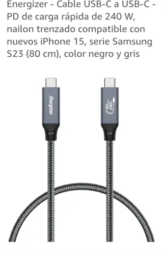 Cable USB-C a USB-C de carga rápida de 240W. - Nailon trenzado resistente. - Compatible con iPhone 15 y Samsung S23. - Longitud de 80 cm. - Color negro y gris. PRECIO POR UNIDAD. HAGO PRECIO POR LOTES. EN MI PERFIL HAY OTROS PRODUCTOS Y CABLES DE CARGA
