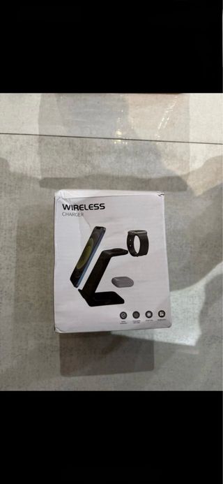 Cargador inalámbrico para móvil, auriculares y reloj. - Diseño moderno y compacto. - Compatible con múltiples dispositivos.