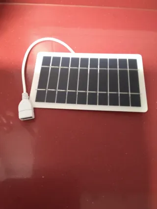 Panel solar portátil con salida USB para cargar dispositivos. - Diseño compacto y ligero. - Ideal para actividades al aire libre.