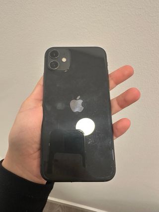Teléfono móvil iPhone 11 en color negro. - Pantalla de 6.1 pulgadas. - Sistema de cámara dual. - Chip A13 Bionic. Se vende iPhone 11 en perfecto estado. En las imágenes se ve la pantalla un poco picada pero es en el protector. La pantalla está en perfecto estado. Nada falla, todo funciona correctamente. Salud de la batería 75%, no obstante, lo cargo una vez día. Se incluye un par de fundas.