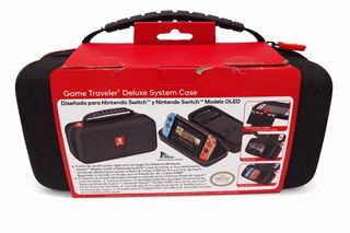 Funda Game Traveler Deluxe System Case para Nintendo Switch y Nintendo Switch Modelo OLED. Diseñada para proteger tu consola y accesorios. - Compartimentos para juegos. - Compartimentos para tarjetas Micro SD. - Espacio para cargador, adaptador AC y cable HDMI.