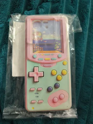 Funda para móvil Xiaomi 13T con un divertido diseño retro inspirado en una Game Boy. Sin abrir. - Color principal rosa y verde menta. - Detalles de botones y pantalla de consola. - Acabado mate.