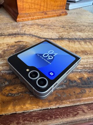 Teléfono móvil Samsung Galaxy Z Flip 7. En perfecto estado sin ralladas ni golpes. Siempre en funda. Com garantia de casi 3 años. Tiene 5 meses de uso - Diseño plegable. - Pantalla exterior. - Cámara principal.