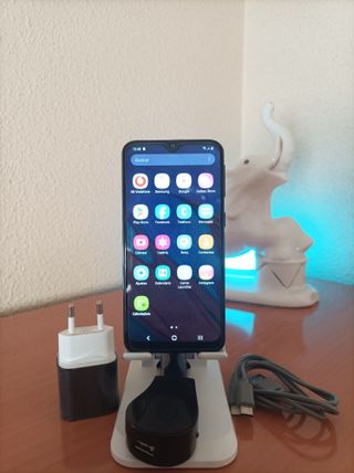 Samsung Galaxy A40 de 64GB de almacenamiento. El teléfono está en excelente estado, alguna marca supercifial en la tapa trasera y una pequeña salto de pintura en el marco superior. Pantalla sin golpes o arañazos, con cristal protector en la pantalla nuevo. Con cargador de Amazon de 5W⚡,cable de carga🔌y cargador de mechero para el coche. Se incluye 1 funda transparente completa proteccion 360º-NUEVA.