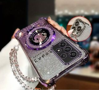 Dos fundas protectoras con acabado brillante para Samsung Galaxy S24+. Incluyen un anillo magnético. - Funda morada con detalles plateados. - Funda azul con detalles plateados. - Anillo magnético morado. - Anillo magnético azul. Hago envíos o entrego en Alicante, zona pla de la vallonga, no me desplazo
