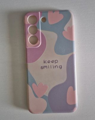 Preciosa funda para Galaxy S22. Tiene un diseño abstracto con colores pastel y la frase "keep smiling". - Diseño único y elegante. - Colores suaves y atractivos. - Material de silicona suave al tacto. - Protección para tu teléfono.