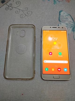 Teléfono móvil Samsung Galaxy J4+ en color rosa. La pantalla esta rota por lo demás funciona muy bien dura la batería .tiene su cargador y una funda amarilla - Modelo: Galaxy J4+ - Color: Rosa