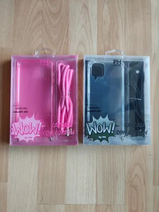 Dos fundas para Samsung Galaxy A12 4G, una rosa y otra naranja, ambas con cordón. - Funda rosa con cordón a juego. - Funda naranja con cordón a juego. - Diseñadas para Samsung Galaxy A12 4G. El cordón y el anclaje se pueden quitar fácilmente. Las 2 fundas por 5€
