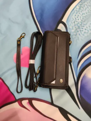 Funda protectora para Samsung Galaxy Z Fold en color negro. Incluye dos tipos de correas para mayor comodidad. - Funda de cuero sintético. - Correa de mano. - Correa larga para colgar.