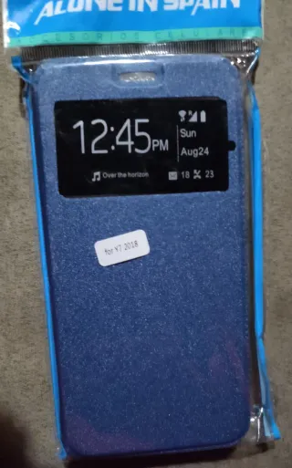 Funda protectora para el modelo Huawei Y7 2018. Su diseño es elegante y funcional. - Color azul. - Acabado texturizado. - Ventana frontal para ver notificaciones.
