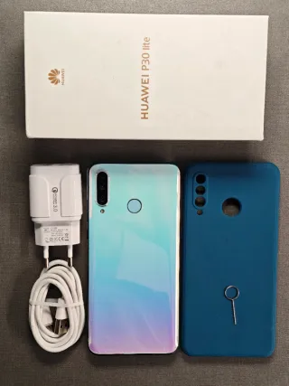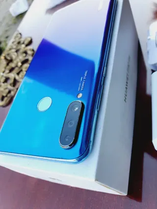Teléfono móvil Huawei P30 Lite en color azul. En la tapa trasera tiene una grieta como se ve en las fotos no afecta nada en el funcionamiento del móvil se puede cambiar o ponerle una funda como la de foto y se puede usar perfectamente. - Capacidad de almacenamiento de 128 GB. - Memoria RAM de 6 GB.