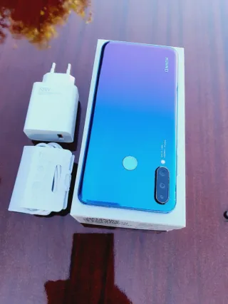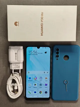 Teléfono móvil Huawei P30 lite con acabado azul. Tiene 4gb de memoria RAM inteligente y 128gb de almacenamiento. Móvil potente, rápido y con una batería muy duradera de más de 3 dias... Trae su caja, cargador ultrarápido de 33W, funda, quita SIM y protector de pantalla.