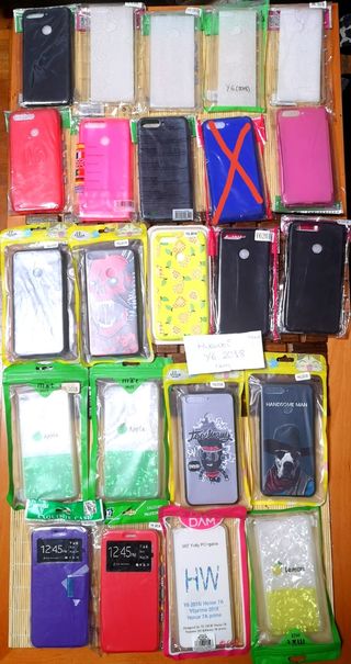 Fundas de móvil Huawei Y6 2018 12 de silicona - 1 euro cada una 7 más duras - 1'50 euros cada una 2 de libro - 2 euros cada una 1 doble - 3 euros