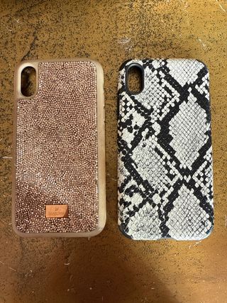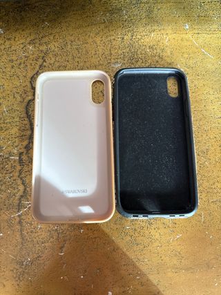 Lote de 4 fundas para iPhone XR, 2 COMPLETAMENTE NUEVAS SIN ESTRENAR ( la rosa y la azul ) y DOS usadas pero en perfecto estado. - Funda azul con cordón negro. - Funda rosa con cordón multicolor. - Funda transparente con tarjetero. - Funda marrón con cuerda e iman trasero. Se venden juntas , en el caso de querer una suelta , son 4€