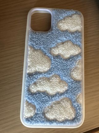Funda para iPhone XR con un diseño de nubes sobre fondo azul. - Diseño de nubes blancas. - Fondo azul texturizado. - Material suave al tacto.