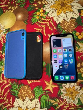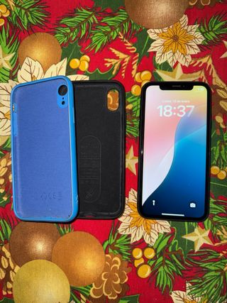 Teléfono móvil iPhone XR Incluye funda protectora. - Color negro. - Pantalla de 6.1 pulgadas. - Cámara trasera de 12 MP. - Funda con diseño dorado. Va un poco regular, el resto bien, la batería está cambiada pero no es original de apple. Es reacondicionado
