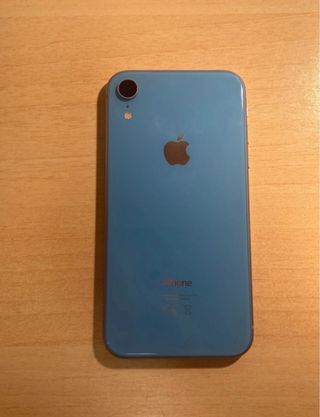 Teléfono móvil iPhone XR reacondicionado en color azul. Se incluye una funda transparente. - Pantalla de 6.1 pulgadas. - Cámara trasera de 12 MP. - Chip A12 Bionic.