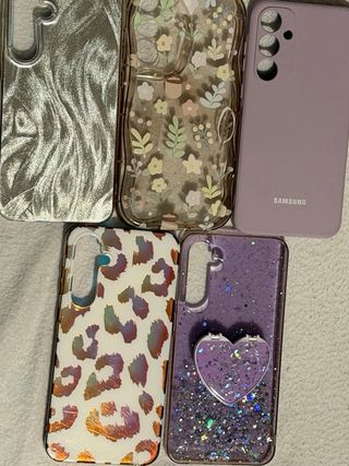 Lote de fundas para Samsung Galaxy A15. Incluye fundas transparentes y de colores. Cada funda a 2€ pero si te llevas todas 10€ - Funda transparente con diseño. - Funda transparente con anillo magnético. - Funda de color turquesa. - Funda de color lila. - Funda con estampado de leopardo. - Funda de color coral.