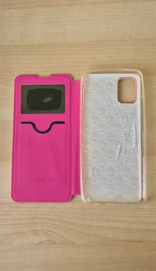 Funda protectora para Samsung A51 5G en color rosa. - Diseño con tapa. - Material textil.