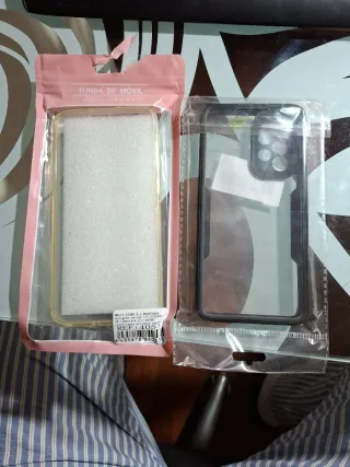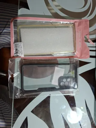 Se venden dos fundas para móvil, una para Samsung A53 y otra para Samsung A56. Ambas vienen en su embalaje original. - Funda transparente con borde negro. - Funda transparente con interior de espuma.