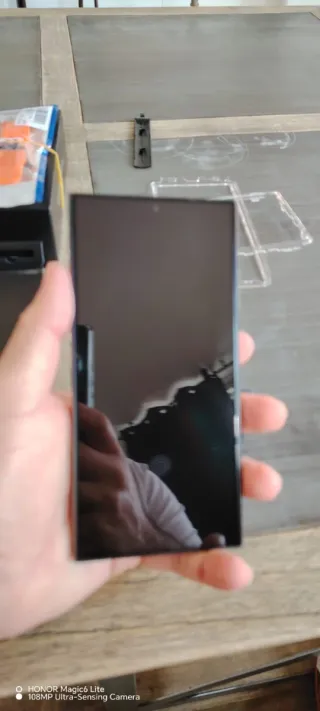 Teléfono móvil Samsung S22 Ultra en color negro. ANDROID 16 - Capacidad de almacenamiento de 256GB. - Memoria RAM de 12GB. OJO. tras actualizar a UI8 aparece una franja blanca en la parte superior si se emplea frecuentencia adaptable. Funciona sin problemas manteniendolo a 60Hz