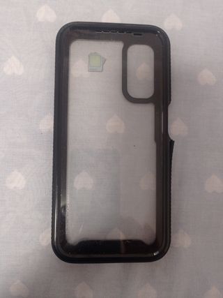 Funda protectora para Samsung Galaxy A14 4G. Se encuentra en buen estado. - Diseño transparente con marco negro. - Protege tu teléfono de golpes y arañazos.