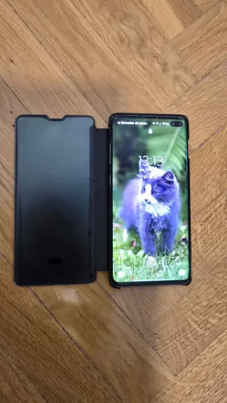 Teléfono móvil Samsung Galaxy S10+ en color negro, 8 GB de RAM y 128 GB de almacenamiento. Funciona perfectamente. Solo la batería ha reducido su capacidad a un 80%. Incluyo una batería nueva con herramientas sin estrenar para que os la monteis si lo consideran oportuno y una funda 360 y protector de pantalla nuevos. Tiene también caja original. El móvil está como nuevo, llevado siempre con funda tipo libro y protector de pantalla (sin arañazos). Ahora lleva un protector de tipo gel que en las fotos se ve un poco sucio. Sin cargador ni cascos.