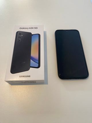 Teléfono móvil Samsung Galaxy A34 5G en color negro. Incluye funda y protector de pantalla.