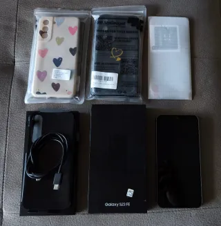 Teléfono móvil Samsung Galaxy S23 FE en color negro. Incluye accesorios: - 2 fundas. - Protector de pantalla. - Cable de carga. Se adjunta ticket de compra, le quedan unos meses de garantía. Hago envíos, disponibles varias opciones de pago.