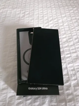 Teléfono móvil Samsung Galaxy S24 Ultra en color negro y con 256GB de almacenamiento.Completamente nuevo con menos de un año de uso y sin ningún golpe,arañazo o rasguño.Se adjunta ticket de compra de El Corte Inglés cubriendo así la garantía y su caja correspondiente completa. Y una funda totalmente nueva de Spigen valorada en 40E. - Diseño elegante y moderno. - Pantalla de alta resolución. - Sistema de cámaras avanzado.