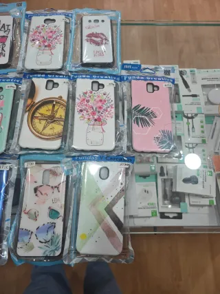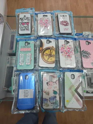 Lote de fundas para teléfonos Samsung. - Diseños variados y coloridos. - Protegen tu dispositivo con estilo. - Compatibles con modelos J3, J4 Plus, J5, J6 Plus y J7. Precio por unidad: 1€
