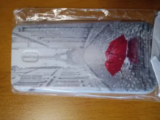 Funda para teléfono móvil con un diseño artístico de París. Presenta una vista de la Torre Eiffel en blanco y negro, con un vibrante paraguas rojo como punto focal. - Diseño de calle parisina. - Detalle de paraguas rojo. - Acabado mate. Funda de silicona oara Samsung Galaxy J5. Esta nuevo sin usar