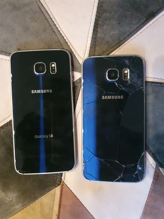 2 Teléfonos móvil Samsung Galaxy S6, uno tiene la pantalla trasera rota, la delantera esta muy bien y funciona perfectamente. La batería no dura demasiado, aunque es habitual en este modelo. El otro está impecable, con cristal protector ,PERO TIENE UN IMEI CORRUPTO y no funciona con tarjeta SIM, fue un engaño cuando lo compré por walapop hace tiempo.Hay sitios que los reconfiguran. Creo que tengo una funda, si la encuentro la envió también. sin cargador ni cable. - Pantalla de 5.1 pulgadas. - Cámara trasera de 16 MP. - Procesador Exynos 7420.