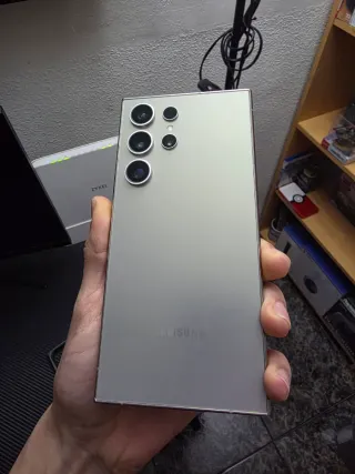 Teléfono móvil Samsung Galaxy S24 Ultra color Gris Titanio. - Capacidad de almacenamiento de 256GB. En muy buenas condiciones, muy cuidado, incluye cable de carga y varias fundas, más de 5, sin caja, muy cuidado, la única marca visible que tiene es una ralla en el marco de la segunda cámara, como se ve en la foto. Tiene recién colocado un protector de pantalla de hidrogel. SIN FACTURA O TICKET, NI CAJA. NO NEGOCIABLE Hago envíos a gente con buenas reseñas, por Wallapop, o bizum y Wallapop y ahorras los 50€ de gasto de envío, también entrego en mano en mi zona.