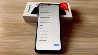 Caja original para el teléfono móvil Samsung Galaxy A56 5G. Presenta una imagen del dispositivo en la parte frontal. - Modelo: Galaxy A56 5G - Marca: Samsung