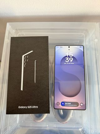Teléfono móvil Samsung Galaxy S25. El uso se limitó a un dia, traspaso de configuración del modelo anterior. Lo vendo al no tener tecnología UWB, necesaria para la vinculación con mi coche. Se entrega con protector de pantalla con dos recambio más y funda transparente. NO CAMBIO, NO NEGOCIABLE