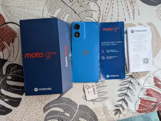 Teléfono móvil Motorola Moto G04s color azul con FACTURA, funda y caja - Pantalla de 6.6 pulgadas 90hz - Cámara principal de 50 MP Samsung - Sistema sonido Dolby Atmos - Batería de larga duración 5000mah - Ligereza: 179 gramos - Protección Gorilla Glass - Memoria ampliable via tarjeta SD - Memoria Ram ampliable hasta 8GB - Bluetooth 5 - Jack auriculares 3.5mm - Dual Sim - Huella dactilar lateral