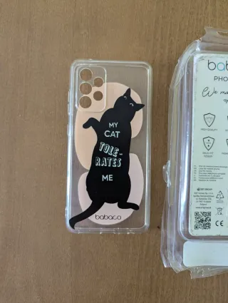 1,25€ envío sello y carta Funda transparente con diseño de gato negro y texto MY CAT TOLERATES ME. - Compatible con Samsung A52 5G, A52 LTE 4G y A52S 5G. - Diseño divertido y original. - Material flexible y resistente.