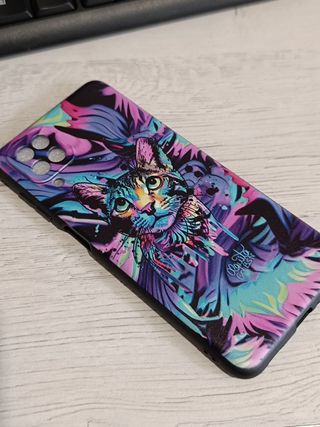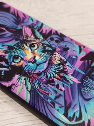 Funda sin uso, nueva. Con el diseño de un gato de colores. Funda de silicona. Sin estrenar. No existen otras fundas con este diseño, es único.