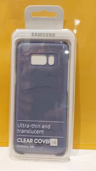 Funda original Samsung S8+, silicona transparente, suave color lila en su blister, sin usar.