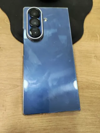 Teléfono móvil Samsung Galaxy Z Fold 7 en color azul. - Capacidad de almacenamiento de 512 GB. - Memoria RAM de 12 GB. - También incluyo 2 fundas una original de Samsung y otra nueva completamente, y la cabeza de carga rápida de samsung