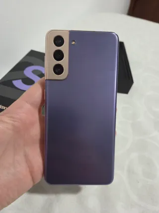 PARA REPARAR. Samsung Galaxy S21 5G en color violeta. Ideal para quien necesite piezas o sepa repararlo. Incluida una funda rosa. Problema: Se encuentra en bucle de inicio (bootloop). Al encenderlo, se queda en el logo de Samsung y vuelve a reiniciarse constantemente. El dispositivo presenta un problema de soldadura fría en la placa base. Fue revisado en un taller, donde se realizó una reparación temporal, pero volvió a fallar al cabo de una semana. Pantalla: Tiene dos fissuras pequeñas en la pantalla.