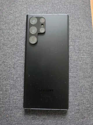 Teléfono móvil Samsung Galaxy S22 Ultra con acabado en negro y 256 GB de almacenamiento. - Pantalla de alta resolución. - Cámara versátil para capturar momentos. - Diseño elegante y moderno. - Protector de Pantalla y de lentes recién puesto. - Se entrega con su cable y caja original. - Estado como nuevo. - Restablecido de fábrica para su primer uso. - Se regala funda protectora.