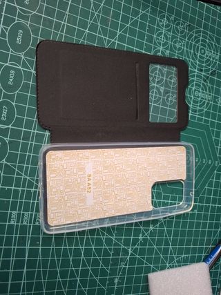 Fundas para Samsung Galaxy S20 FE, una verde oscura y otro fosforito neón y otra de KarolG. Los verdes incluyen una correa para el cuello. Pocos usos, buen estado, véase bien. Se venden las 3 juntas. Precio por todo.