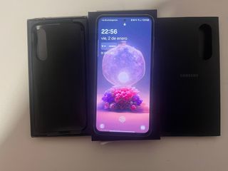 Teléfono móvil Samsung Galaxy S23 FE acabado en negro con una capacidad de almacenamiento de 128GB. El teléfono funciona perfectamente, no tiene ningun defecto ni rotura. Pantalla en perfectas condiciones con protector de pantalla instalado. Incluida funda protectora negra. Caja original incluida
