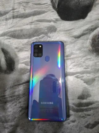 Teléfono móvil Samsung A21S, 4gb RAM y 128gb Almacenamiento. Color Azul claro. Android 12 actualizable hasta Android 14. Desbloque con huella. Está en perfecto estado físico y de batería. Siempre protegido con funda y protector de pantalla. Todo original sin reparaciones ni cambios de accesorios. Conserva puesto el protector de pantalla. Regalo funda. El telefono se entrega restaurado de fabrica y en su caja original. Las fotos con pantalla encendida fueron hechas antes de su restauración. Solo venta en persona. No acepto ofertas. No negociable.