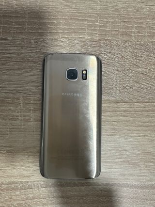Teléfono móvil Samsung Galaxy S7 en color plata. Incluye caja original y funda protectora. EL MOVIL ES PARA PIEZAS TIENE PROBLEMA EN PLACA BASE PARA QUIEN SEPA ARREGLARLO.