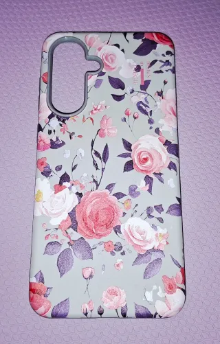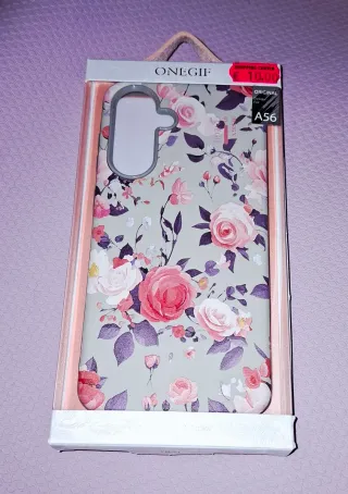Funda para móvil Samsung Galaxy A56 con un bonito diseño floral. - Estampado de rosas y hojas en tonos rosas, morados y verdes. - Acabado mate.