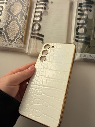 Conjunto de fundas para Samsung S23. - Funda con diseño de serpiente. - Funda con diseño de cocodrilo blanco. - Funda protectora color verde militar con anillo. Precio 1€ cada una (3,9€ todas)